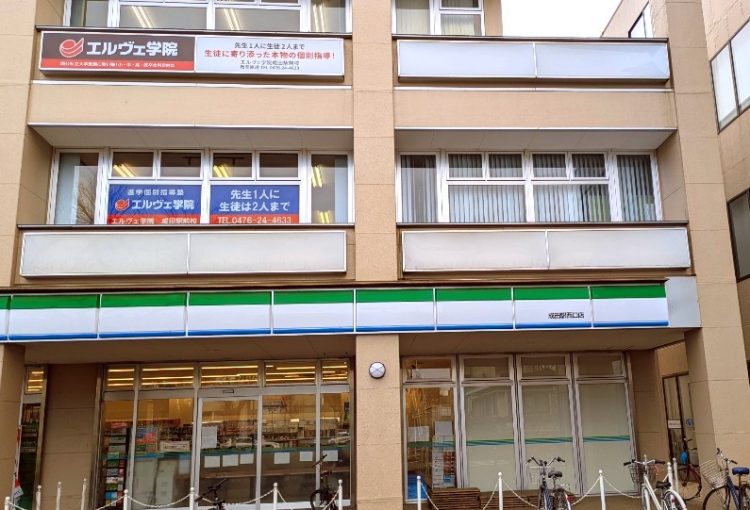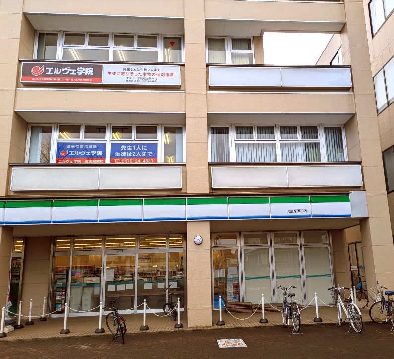 JR成田駅西口を出てすぐ、左側にありますファミリーマートの2階になります。駅から徒歩2分です。